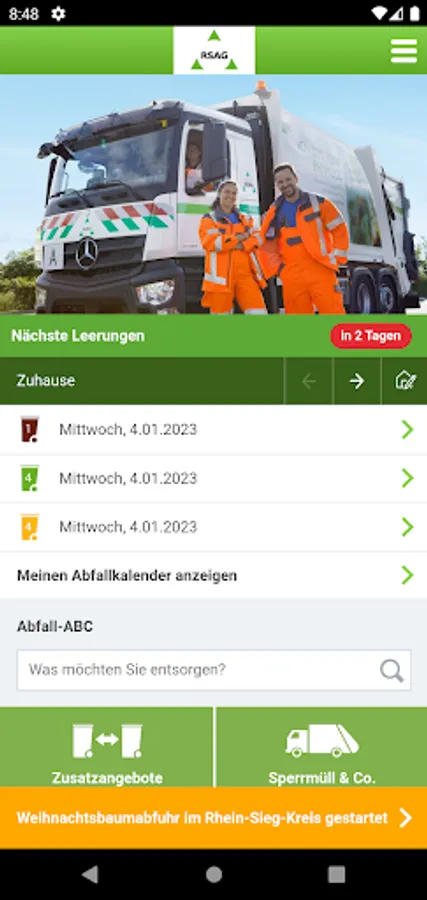 The free RSAG app is the digital disposal aid for your pocket and contains all the important information about waste, disposal options and collection dates in the Rhein-Sieg district.