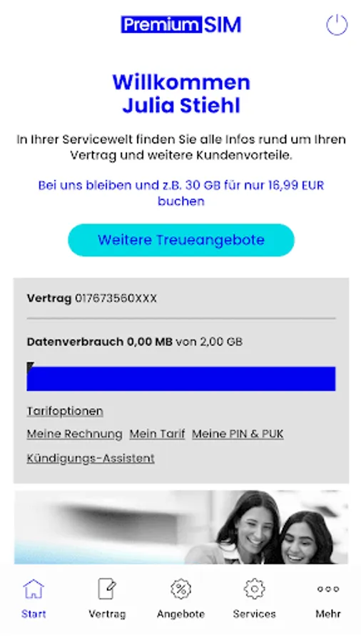 With our service PremiumSIM world app, you have everything you need at a glance: Access your account from mobile, book right tariff options or update your data. Never miss the latest special promotions and tariff highlights!