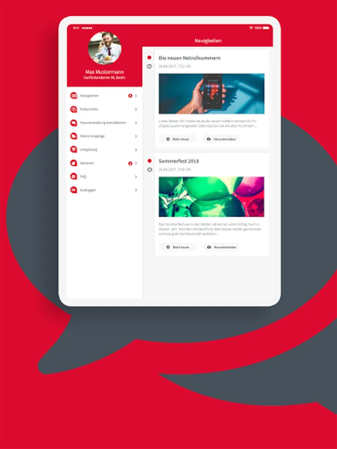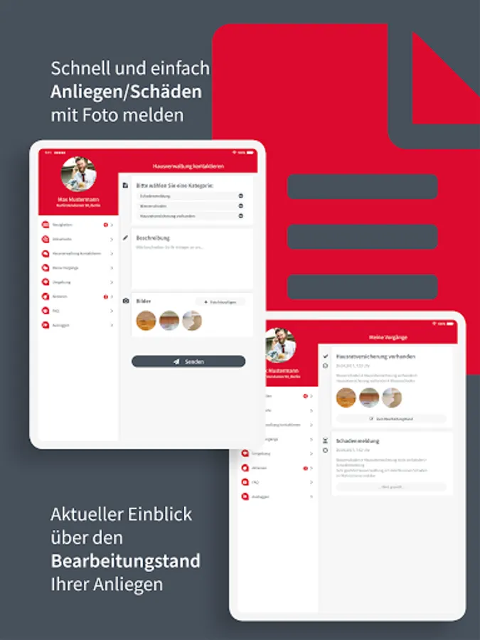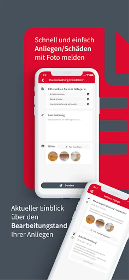 As a tenant or owner, you can report damage or concerns directly with photos via our app. Your inquiries are then available to our employees and can also be forwarded to craft businesses.