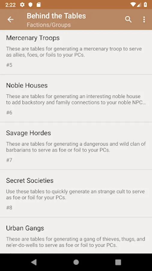 This app provides you with a collection of over 250 random tables for generating locations, NPCs, monsters, and much more!
