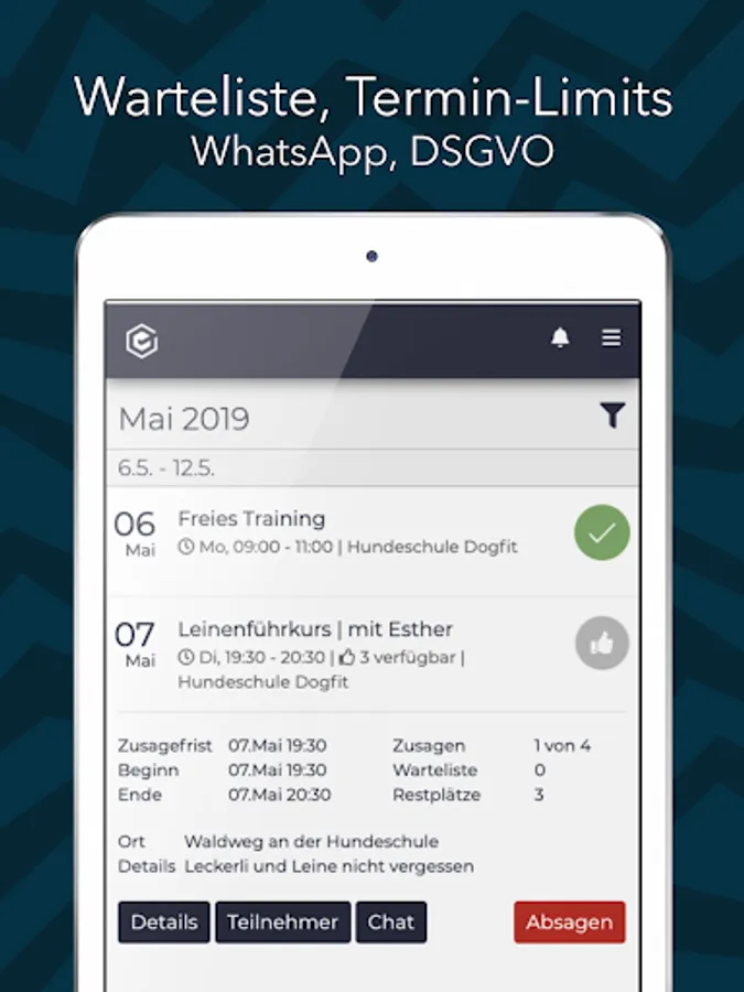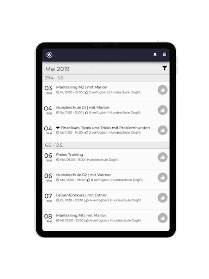 Modern, mobile appointment organization for your training, training or course offer. Easy booking for customers, easy management for the organizer.