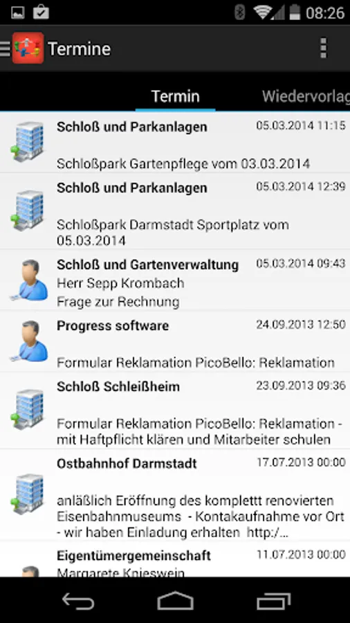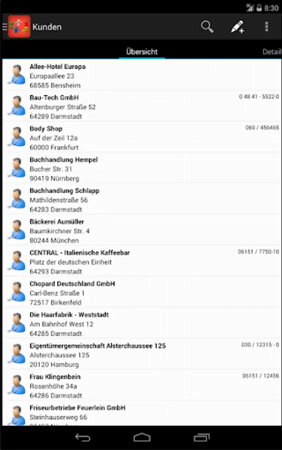 He quickly sees open appointments, the customer history, correspondence, offers and invoices. Of course, all contact details are also available to comfortably make phone calls, send emails or to start navigation to the customer. The documentation of the customer visit, the creation of new contact persons or other data changes are possible directly online. Of course, all this happens based on the individual access rights.