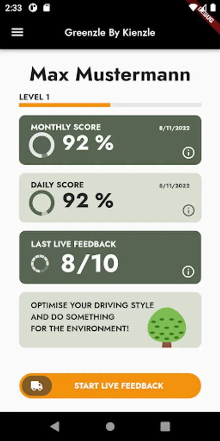 Greenzle by Kienzle is an app that helps you drive in a more environmentally conscious, resource-saving and economical way. Whether you are driving a car, bus or truck, you receive important insights and feedback on your own driving style, which helps you to drive the vehicle in an efficient range. The associated and pre-installed telematics unit in your vehicle records consumption-relevant data in the process. This includes: RPM, acceleration, braking as well as cornering behavior and much more. This data is then translated by Greenzle by Kienzle into driving events and subsequently displayed in simple and descriptive scores.