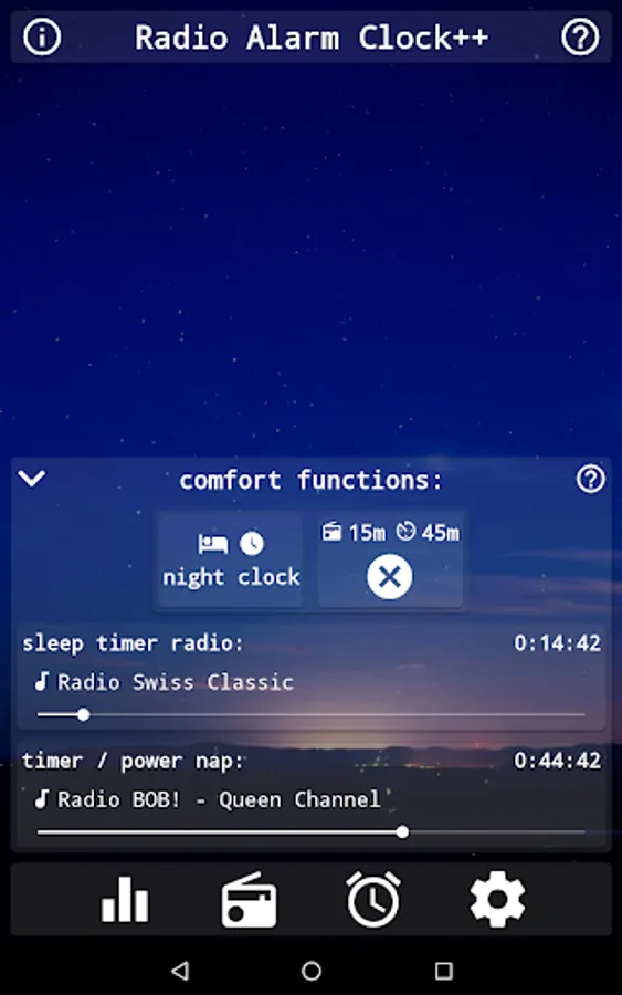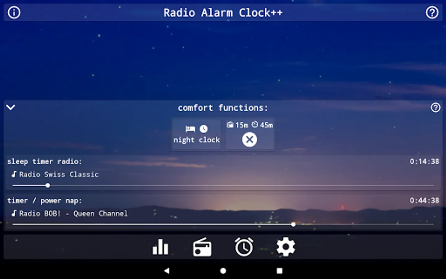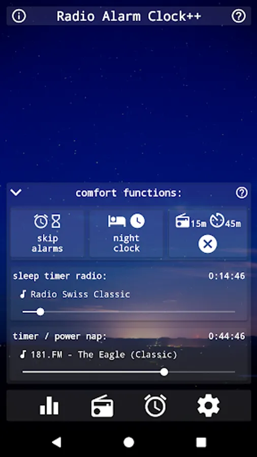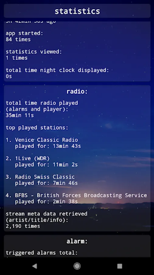 •statistics :) - examine detailed statistics about your behaviour regarding getting up, listening to the radio and other actions within the app