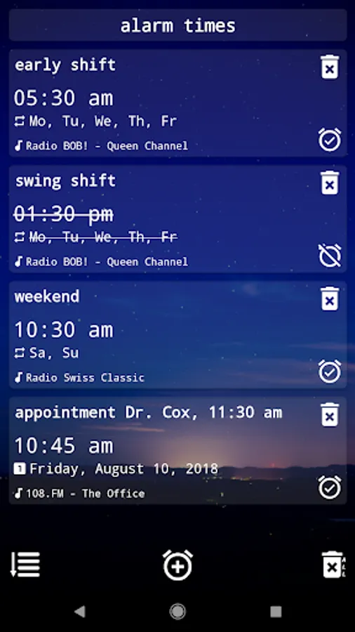 -the possibility to change the radio station also on the alarm screen (like in the radio player)