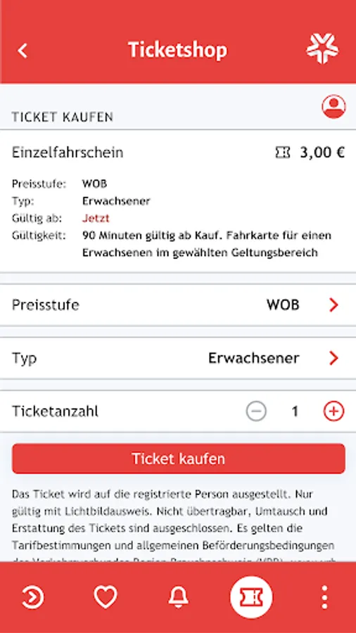 It couldn't be more convenient: With the app, you can get the ticket directly on your smartphone. Simply select the connection and ticket, confirm the ticket purchase and your mobile phone ticket is saved in the app and immediately serves as a ticket. If you already know which ticket you need, you can take the direct route to the ticket shop.