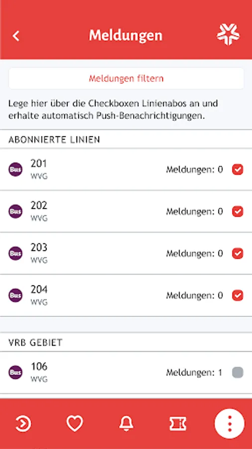 You can find all current fault and traffic reports in the Settings area. Do you use certain lines regularly? Then activate the line subscription for them and you will see the relevant messages directly on the app home page.