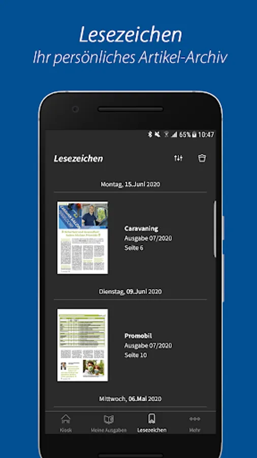 - All digital editions from 2019 of promobil, CLEVER CAMPEN, CARAVANING and promobil CAMPINGBUSSE including all special issues