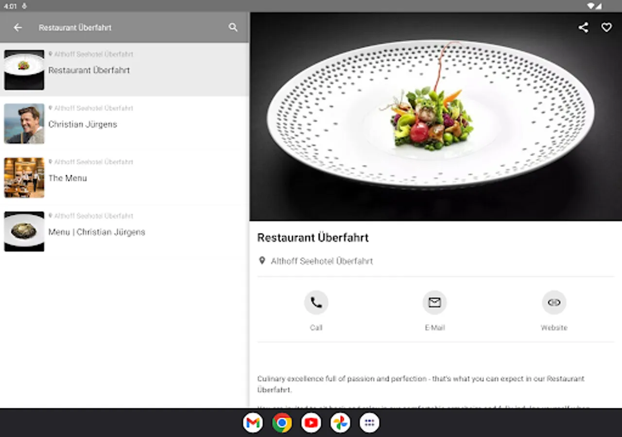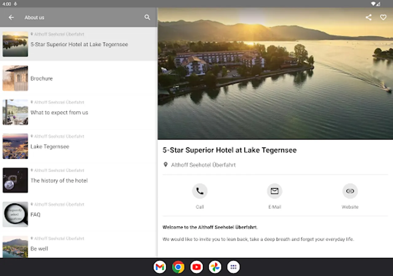 With the Seehotel Überfahrt app, you can browse through numerous background information and worth-knowing entries and always stay well informed.