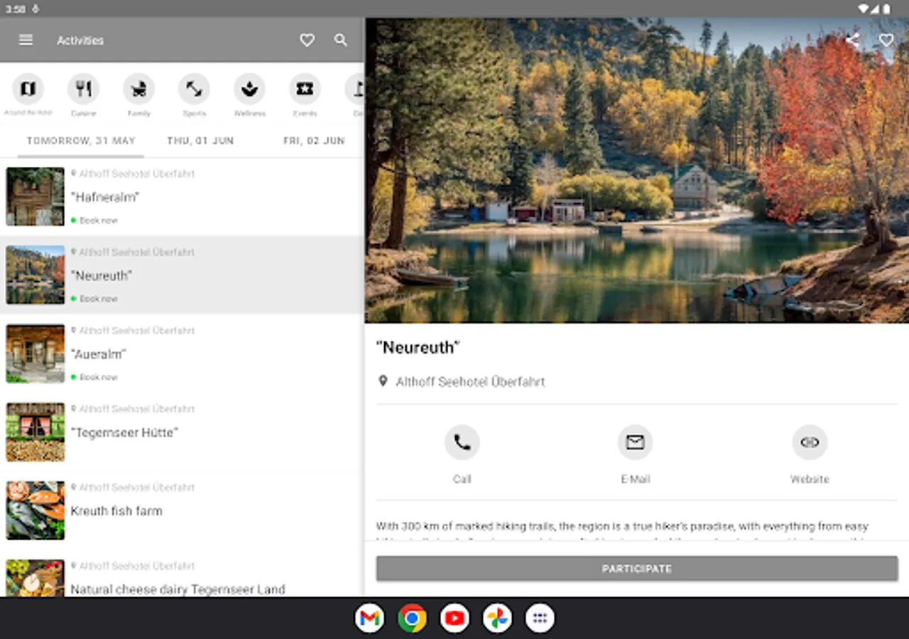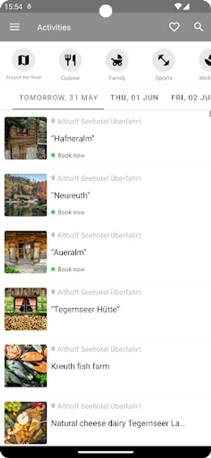 Filter by different interests such as wellness, culinary, activities and much more. Put together your own program from our activities. This way, the Seehotel Überfahrt app offers content tailored to your personal needs.