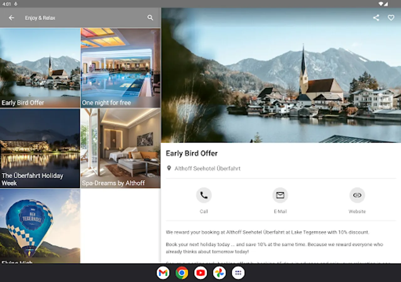 The Seehotel Überfahrt app accompanies you during your stay and informs you about current offers as well as exciting events and gives you further helpful tips and hints.