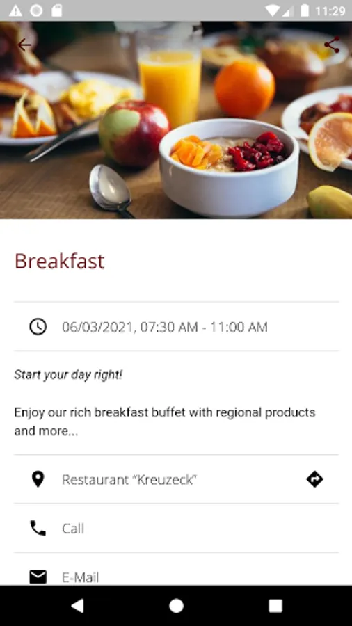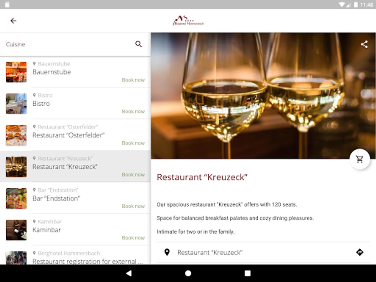 Important standard information about the Berghotel Hammersbach, such as location and directions, as well as opening hours of the restaurant and reception, are prepared for you in the app.