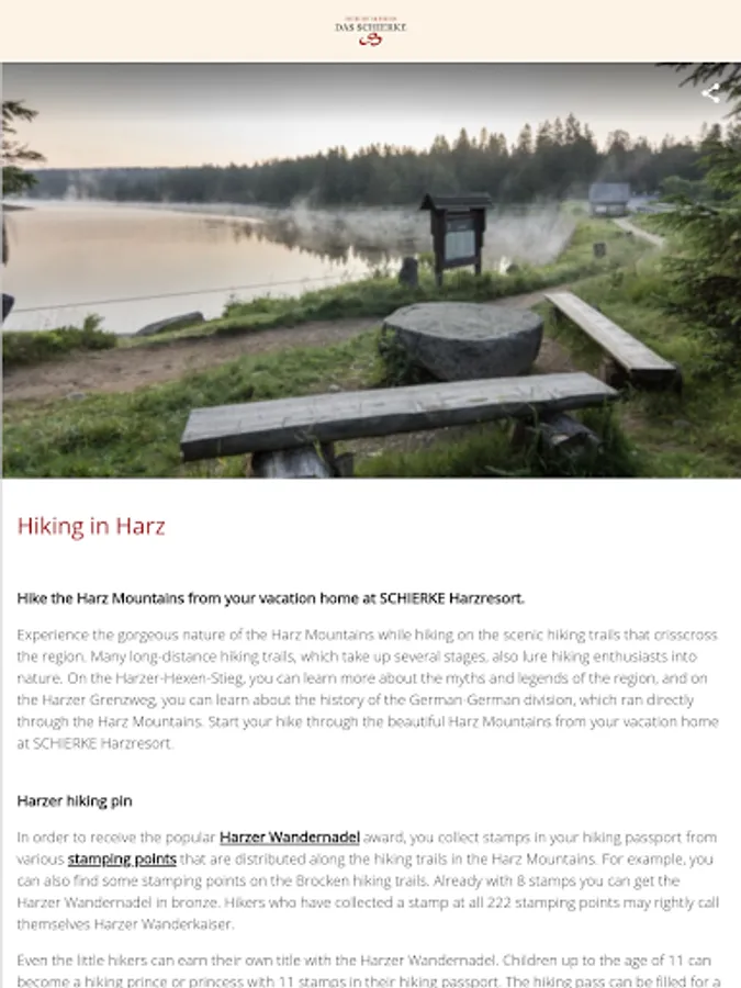 Filter by different interests such as leisure, culture, gastronomy and much more. Put together your own program. Thus, the Schierke Harzresort app offers content tailored to your personal needs.