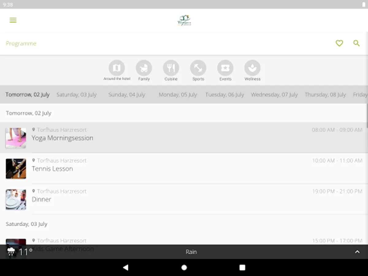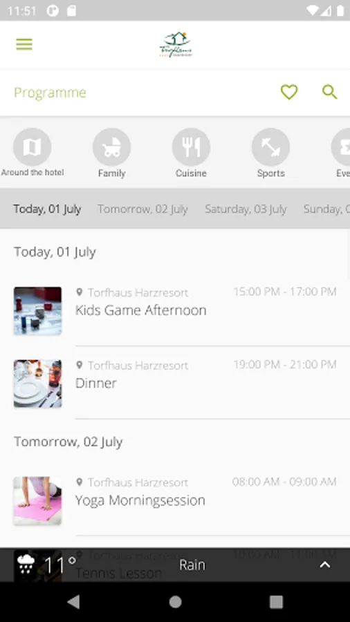Filter by different interests such as wellness, fitness or family. Put together your own program from our activities. In this way, the Torfhaus Harzresort app offers content tailored to your personal needs.