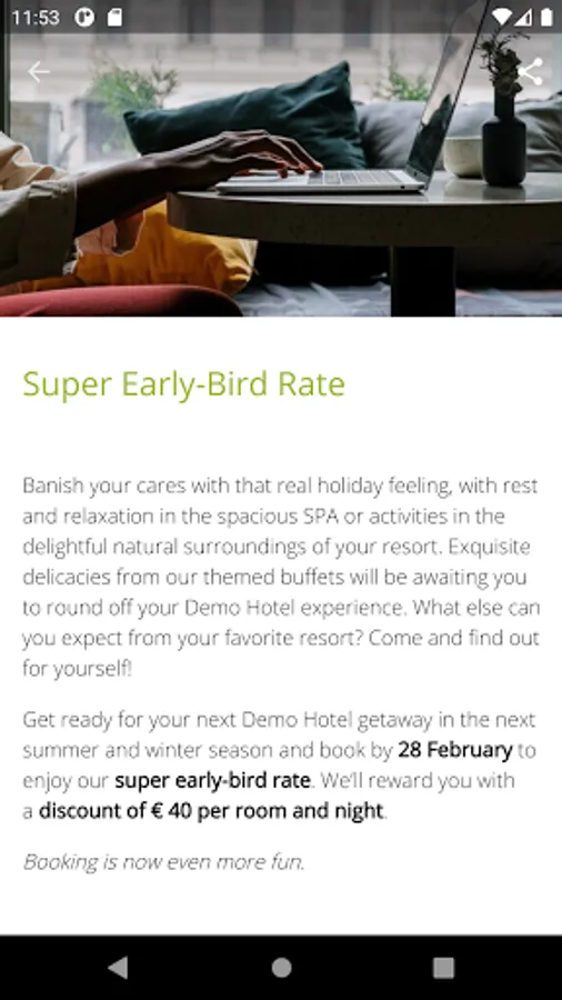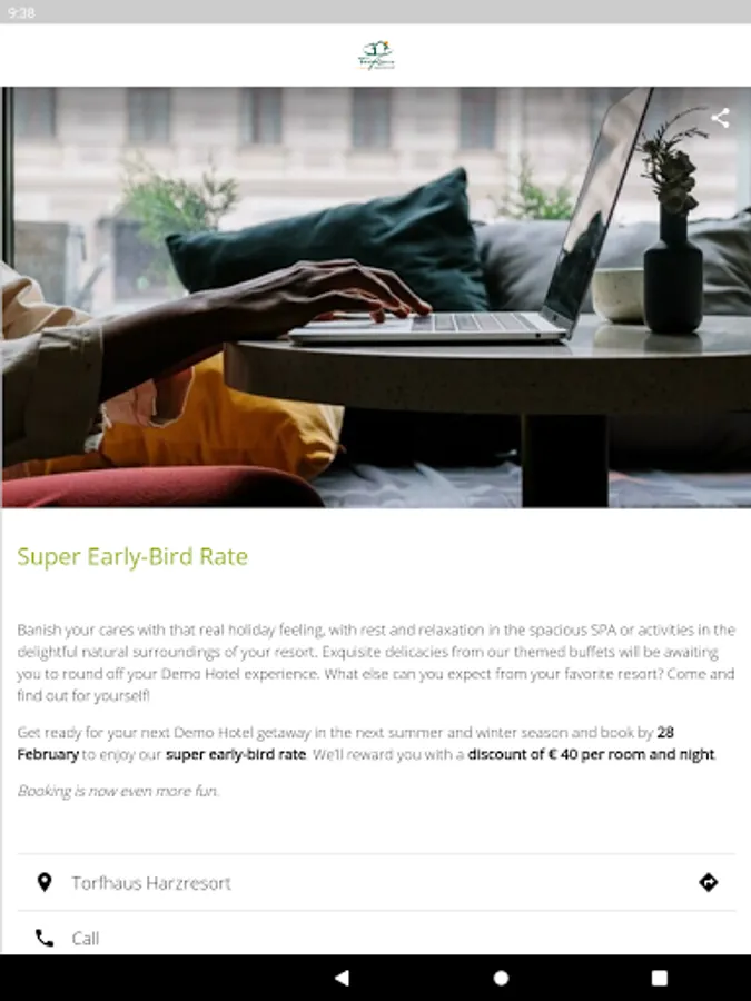 The Torfhaus Harzresort app accompanies you during your stay and informs you about current offers as well as exciting events and gives you further helpful tips and hints.