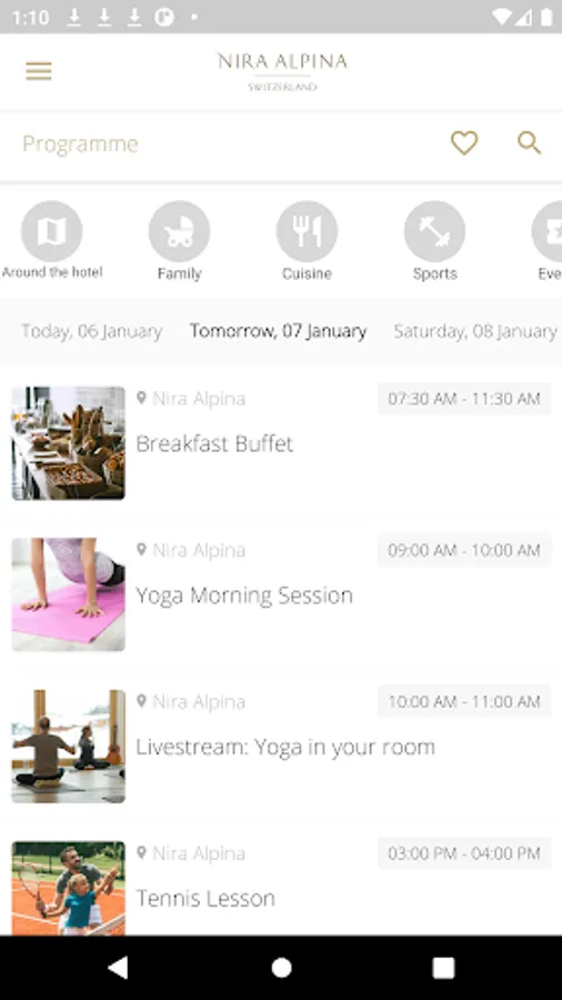 The Nira Alpina app accompanies you during your stay and informs you about current offers as well as exciting events and keeps other helpful tips and hints ready for you. Stay up to date anytime and anywhere. With the Nira Alpina app you have quick and mobile access to all information about the 4-star superior hotel.
