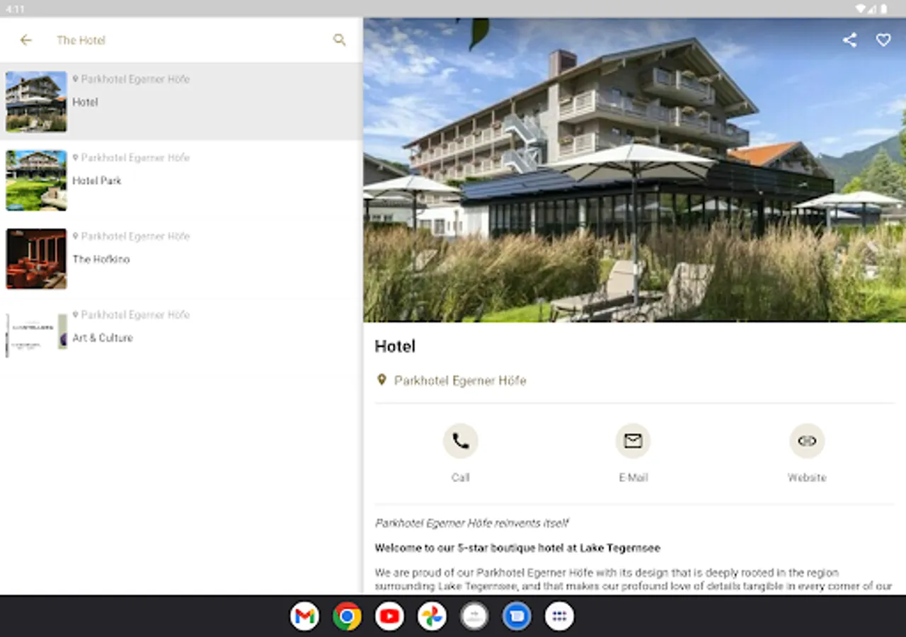 Note: The provider of the Egerner Höfe app is the PEH Parkhotel Egerner Höfe Betriebs GmbH, Parkhotel Egerner Höfe, Aribostraße 19-26, 83700 Rottach-Egern. The app is supplied and maintained by the German supplier Hotel MSSNGR GmbH, Tölzer Straße 17, 83677 Reichersbeuern, Germany.