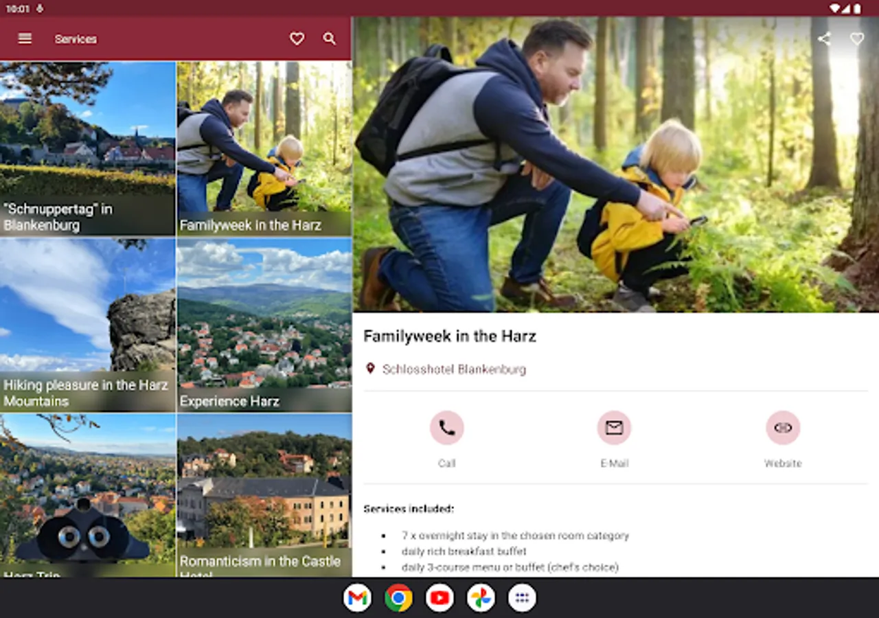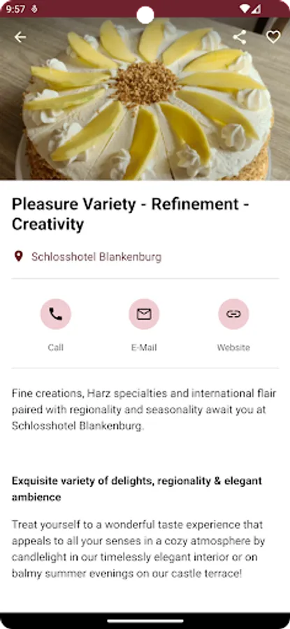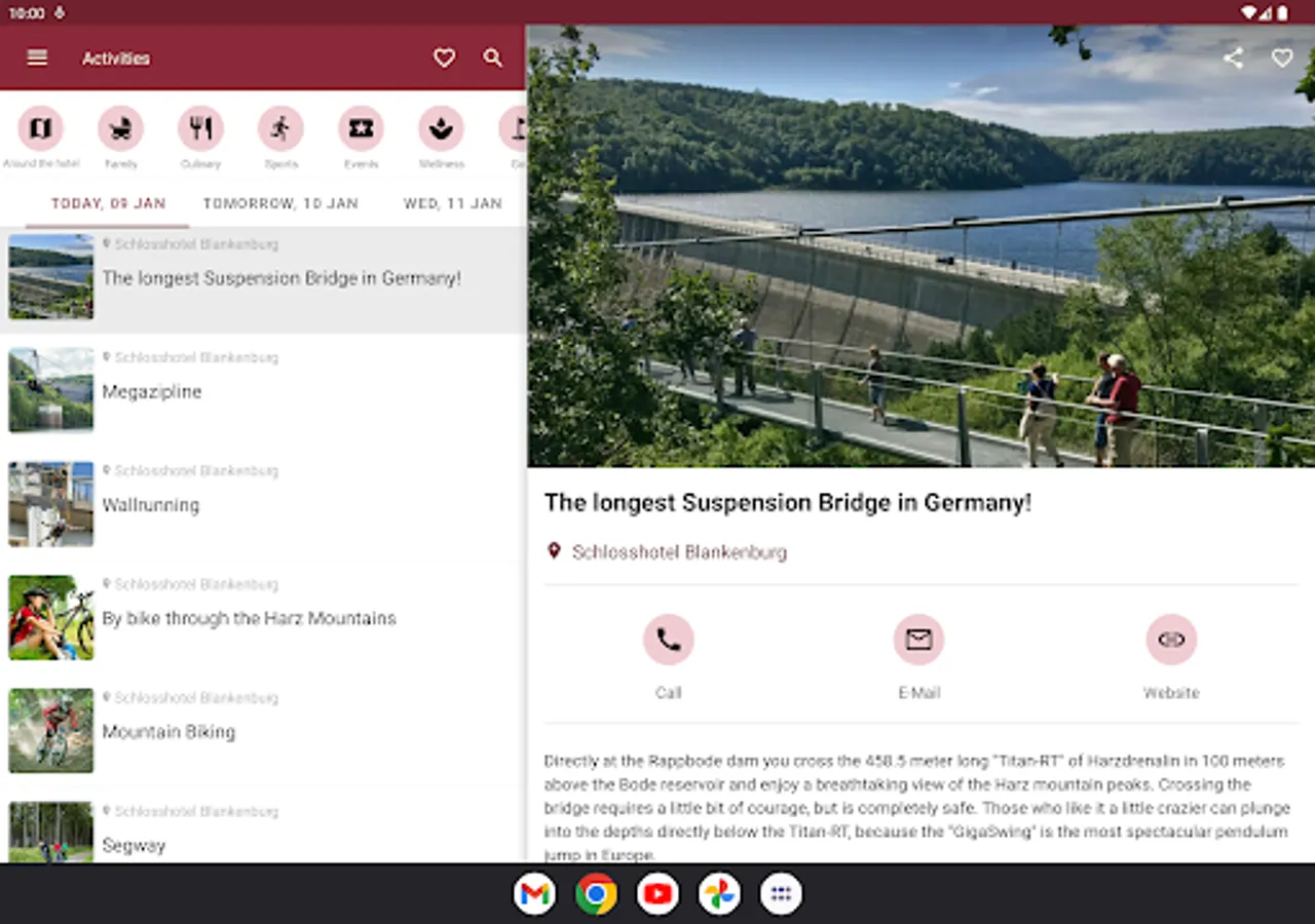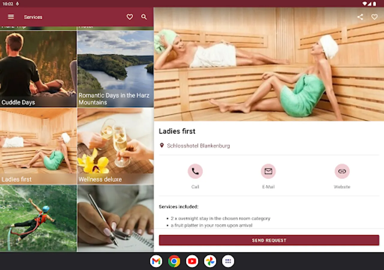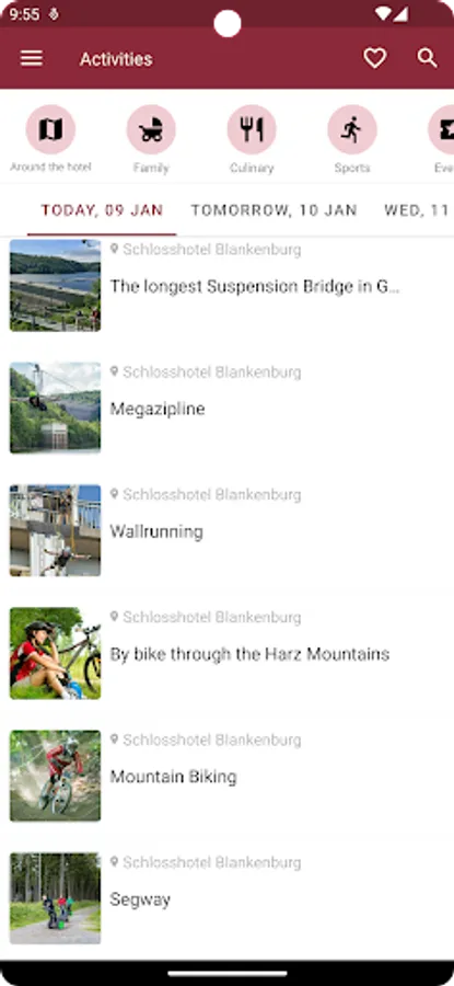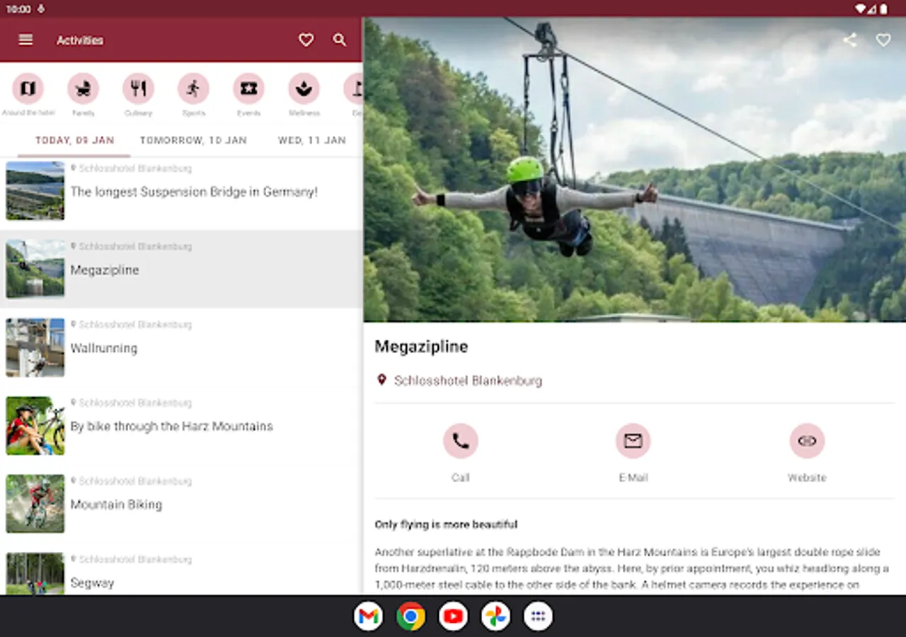 Filter by different interests such as gourmet, wellness, activities or offers. Put together your own program from our activities. This way, the Schlosshotel Blankenburg app offers content tailored to your personal needs.