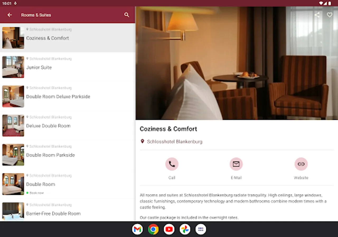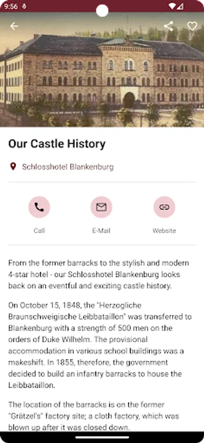 Stay up to date anytime and anywhere. With the Schlosshotel Blankenburg app you have quick and mobile access to all information about the Schlosshotel Blankenburg.