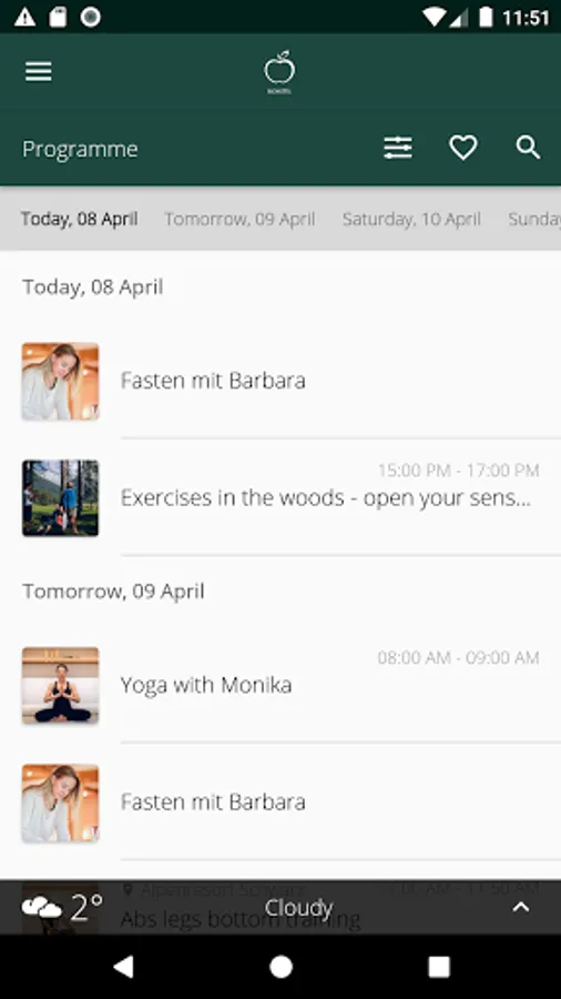 Filter by different interests such as wellness, yoga, golf, fasting or cuisine and put together your own programme. In this way, the Biohotel Schweitzer app offers content tailored to your personal needs.