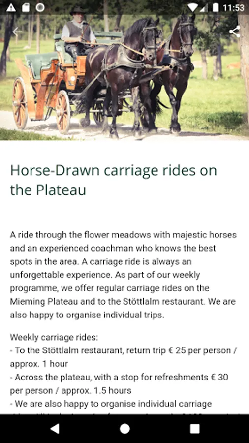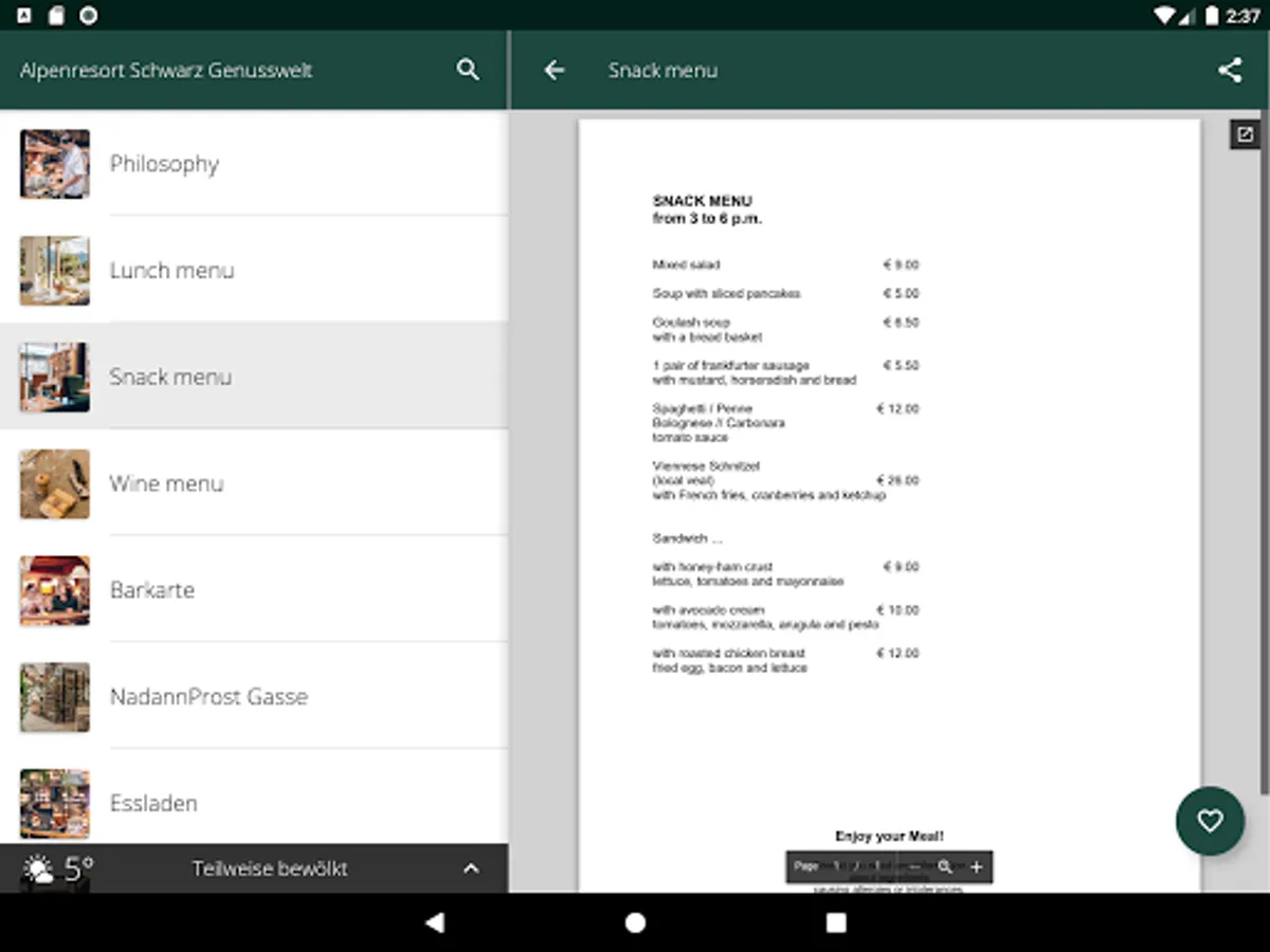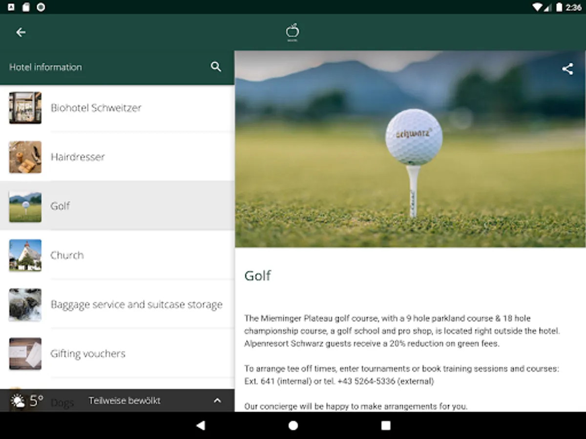 Important standard information such as location and directions as well as opening hours of the restaurant, wellness area and reception are prepared for you in the app.