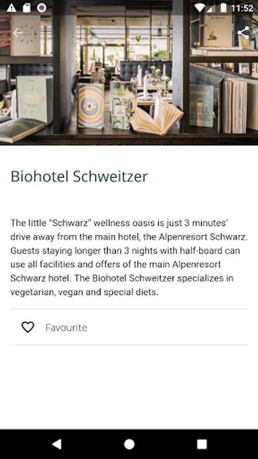 The Biohotel Schweitzer app accompanies you during your stay and informs you about current offers or courses and gives you further helpful tips. With the app you have quick and mobile access to all information about the Biohotel Schweitzer.
