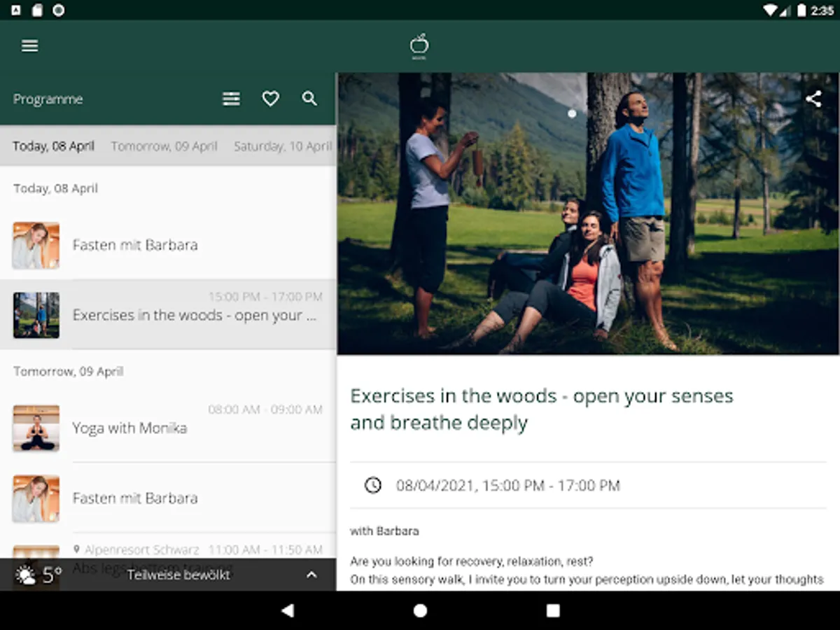 You can easily organize your holiday with the Biohotel Schweitzer app. Secure your participation in exciting courses and activities.