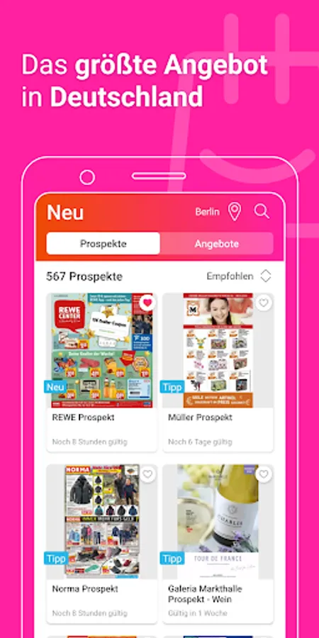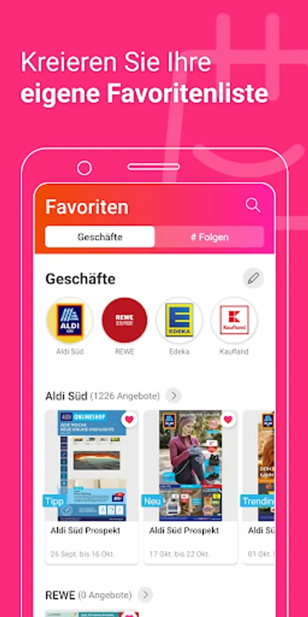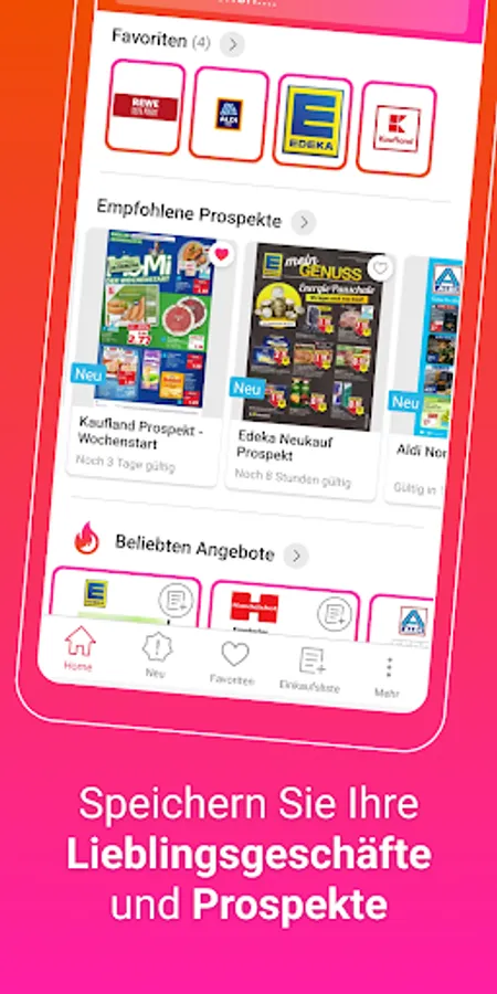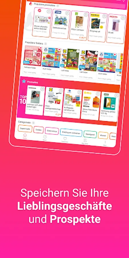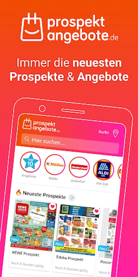 Our Prospektangebote.de APP shows you all current brochures and offers from large and small retail chains in Germany. Among them you will find not only all supermarkets and hardware stores, but also electronics stores, fashion stores, toy stores, computer stores, drugstores and many more. You'll even find most of the local shops here. If you want to favorite a shop, you just have to click on the heart. This means that you are always the first to be up to date with the latest offers from your favorite shops and have your favorite advertising brochures to hand at all times.