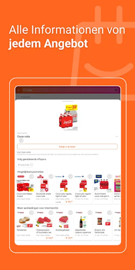 Are you looking for an offer for a specific item or product? Then you will quickly find what you are looking for in our app by making a selection from the menu. This gives you an overview of the brochure in which you can find this article, how expensive it is and how long the offer is still valid. In most cases, you can then select the item from the brochure with just one click and then easily order it in the online shop. Of course you can also save the offers by using our "Save" function below. This allows you to easily find them again or compare them with other offers.