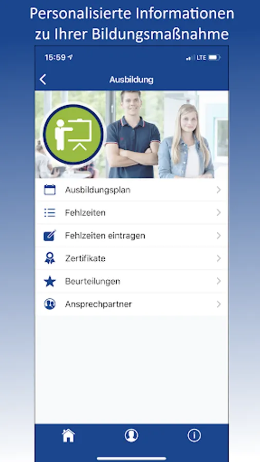 Trainees can see their absences, certificates and assessments and submit their absenteeism messages directly to the app,