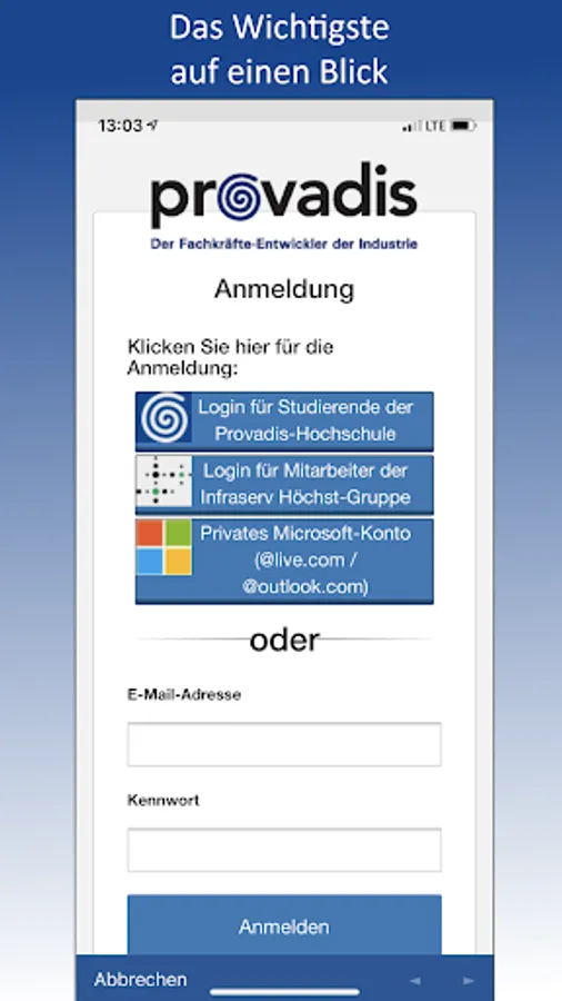 With the Provadis CampusApp you always have the most important information about your education, training or your studies with you.