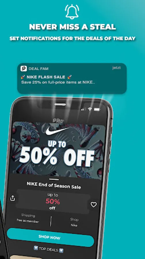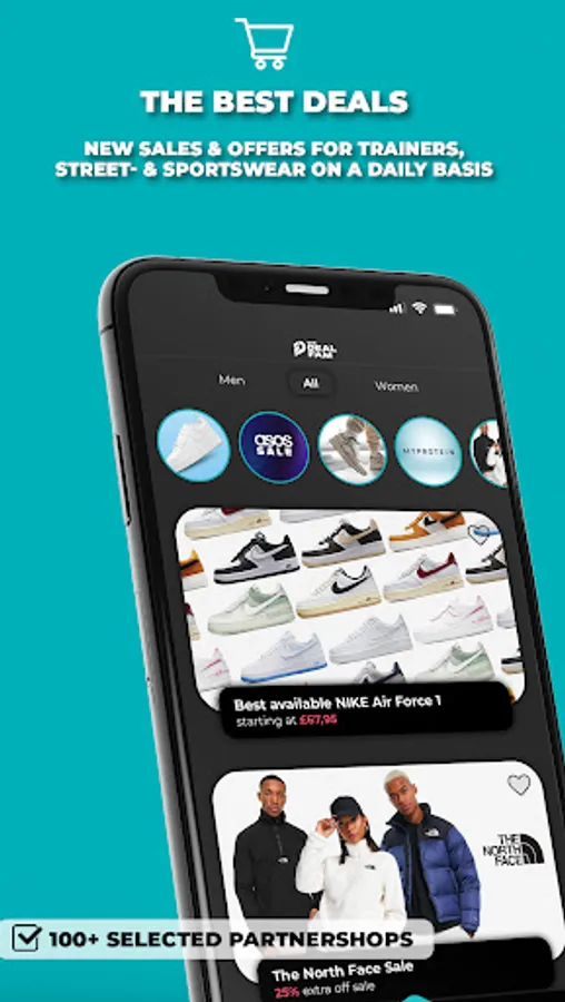With the DEAL FAM app, you can get the best deals for sneakers, streetwear & sportswear directly on your smartphone. Whether it's NIKE, adidas, The North Face, New Balance, VANS or PUMA - with us, you'll always find the best prices for the currently most popular sneakers, street- & sportswear pieces to save you a lot of money. With our push notifications, we inform you about the best sales, exclusive offers and hottest deals from 100+ partnered online shops. This way, you're always the first to know, can buy immediately, and will never again be disappointed for missing out on your desired sneaker or fresh streetwear at the best price.