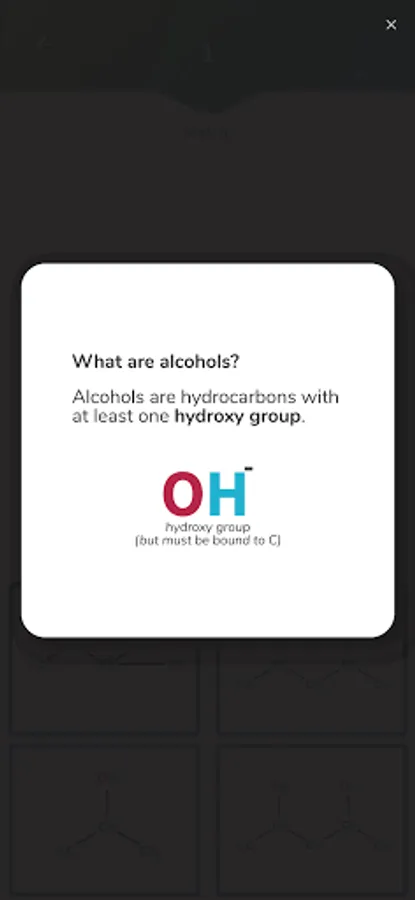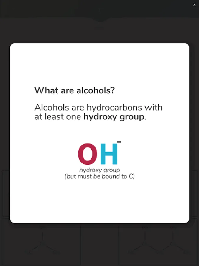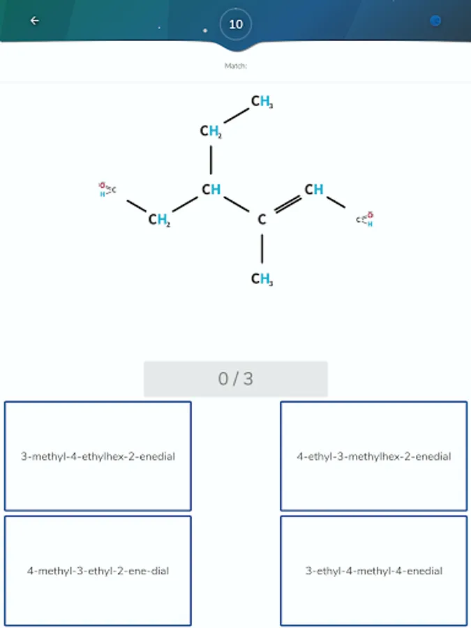 You'll get to know the nomenclature of organic molecules in both directions: in some levels you will match molecules and their names, in some it will be the exact reverse and often the app will enable you to draw molecules yourself in something like a building box yourself.
