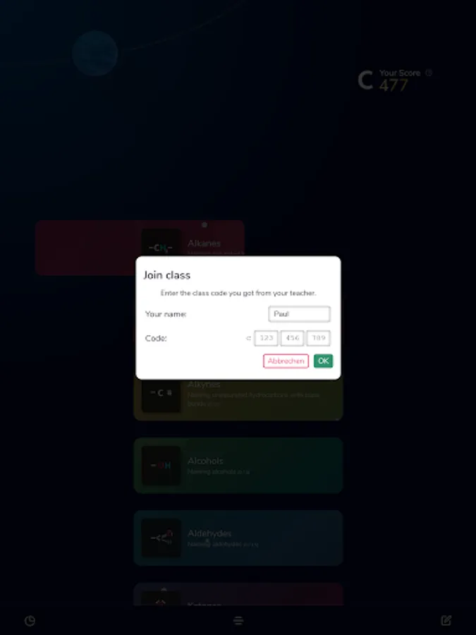 You can also get creative in the creative mode of Planetary Nomenclature Neptune: Just build molecules yourself and let the app name them for you. This is especially helpful when you don't really know how to name something and you just want to try it. Also really useful: Colorful markings of the molecules to indicate corresponding parts of the name and the option to hide the name and challenge yourself.