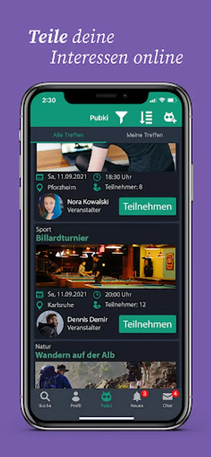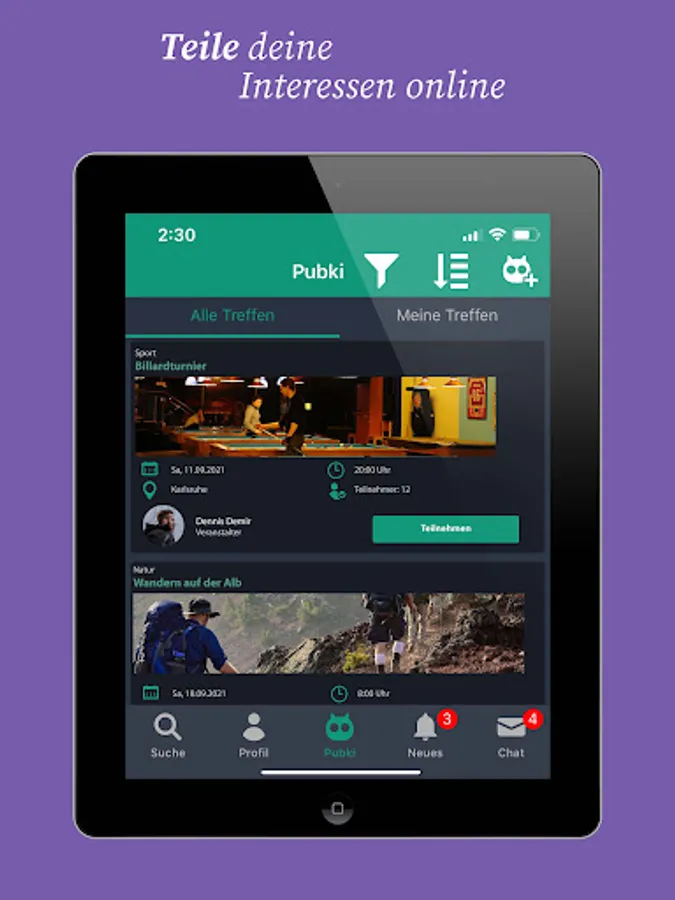 Would you like to finally get out of your everyday life and into the unlimited possibilities of spending your free time? Then you are absolutely right with us! Get to know new people in your area, share your interests and meet for common activities.