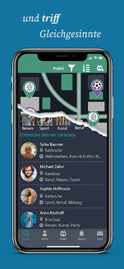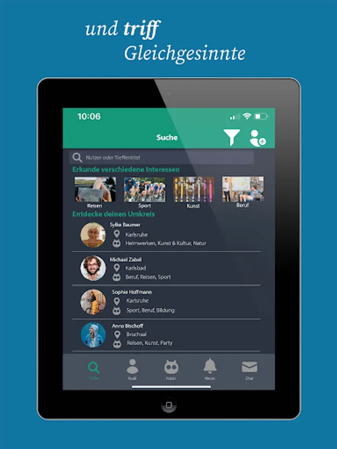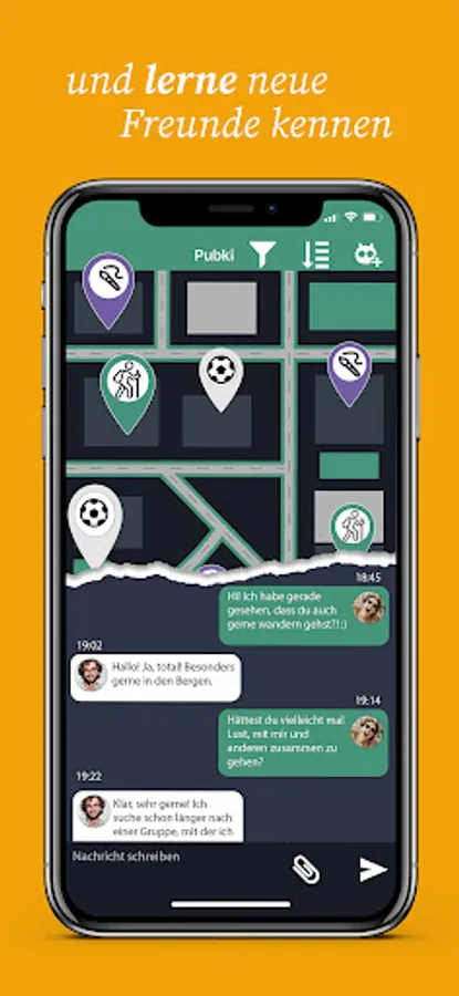 A new form of social media that again leads to more community and togetherness. We offer you a platform on which you can easily meet new people in your area. You exchange your interests, chat and then meet up for joint ventures.