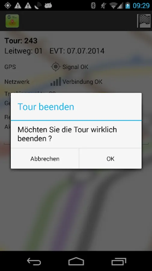 The user is responsible for ending the tour recording when the tour is finished. Otherwise, further geo-coordinates will flow into the wholesaler's tour system and transmit the current location to the wholesaler.