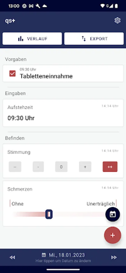 You observe how things are going for you, e.g. in therapy. You can use qs+ universally as a diary, design it individually, adapt it to your goals, record what is really important, day after day, very easily, with a few "clicks" and later evaluate the progress - no problem with qs+!nThe app has 3 areas for your observations: