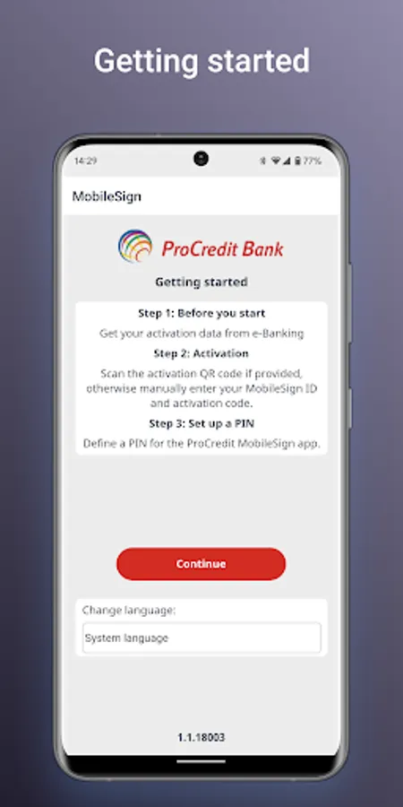 Get the ProCredit MobileSign app to securely authorize transactions and documents using various ProCredit services.