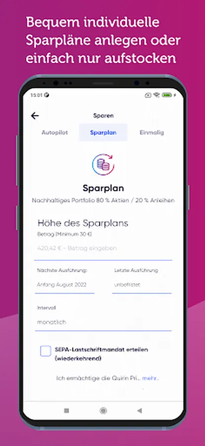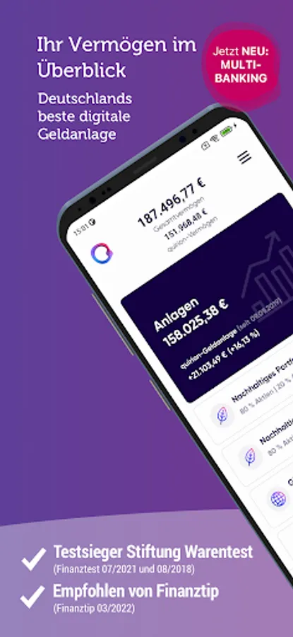 • With the app, you can invest in professional, multi-award-winning asset management at minimal cost and invest your assets on the capital market worldwide.