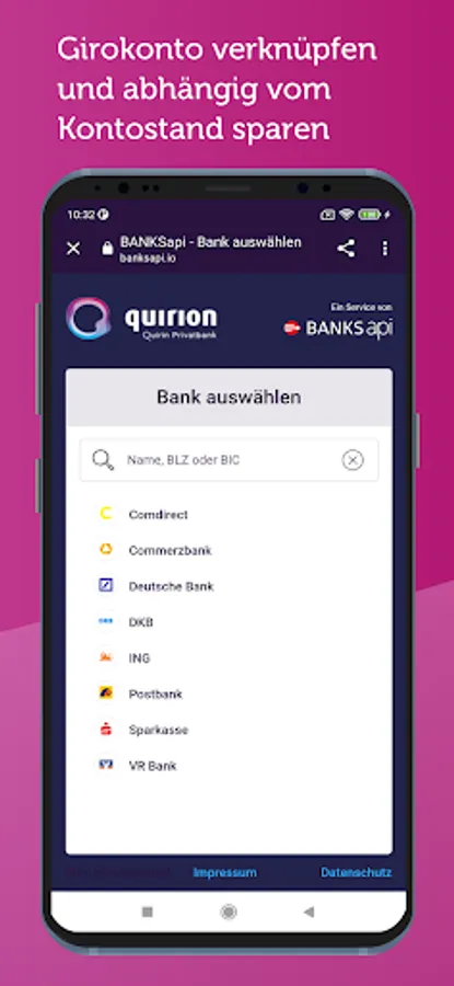 • Your checking accounts, credit accounts and deposits can be securely connected to the app. This allows you to save dynamically depending on your account balance or check account balances and transactions.