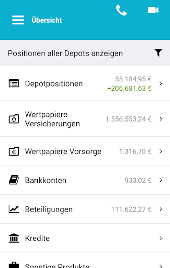- Consolidated balance sheet incl. All fund shares, insurance, investments and bank accounts