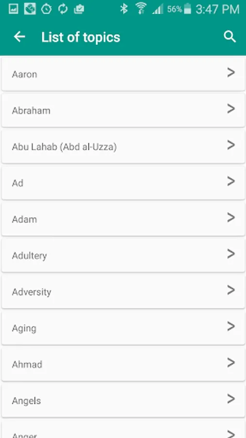 Complete text of the Quran in Arabic and its english translation is available within the App. A detailed topic index of the Quran is also built-in to assist the user to search for the verse according to his/her interest.