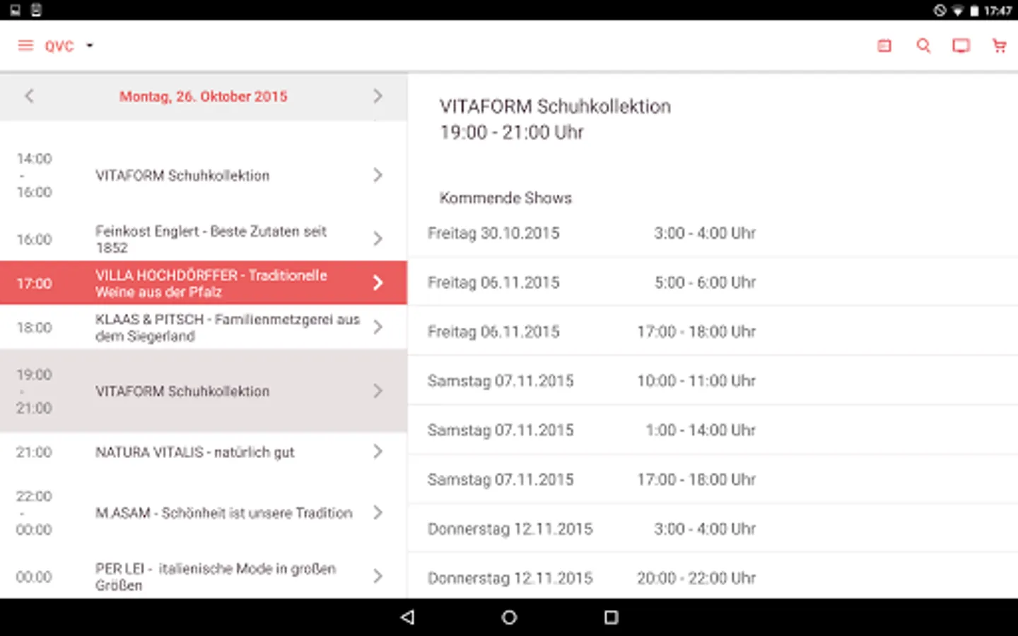 Experience the TV shows of all QVC channels on the go and be inspired. Thanks to the program schedule and the reminder function, you will not miss a favorite show.