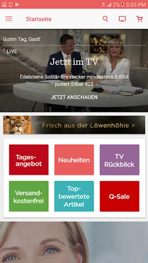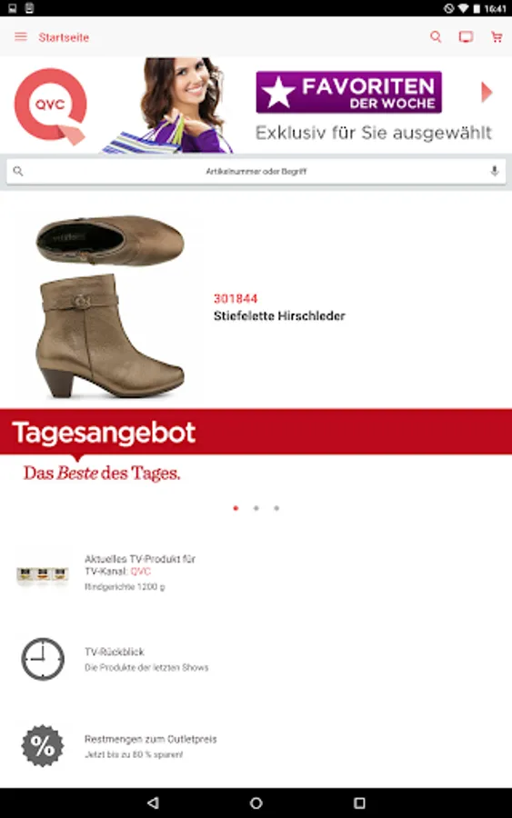 Here you can see at a glance the current daily offer and other top topics at QVC.