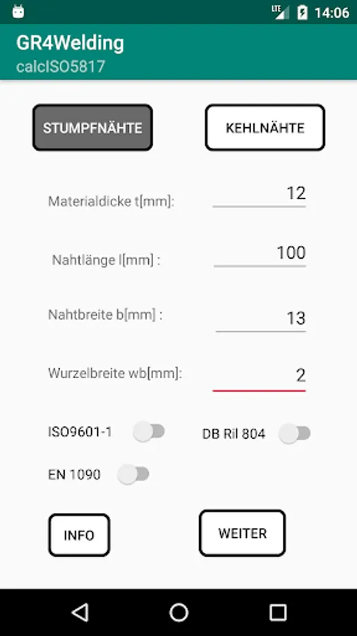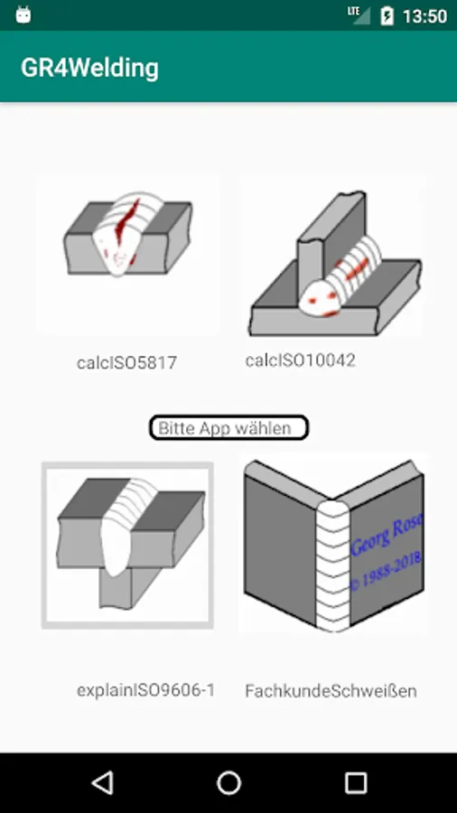 The four individual apps calcISO5817, calcISO10042, explainISO9606 and FKSchweissen are combined in one app.
