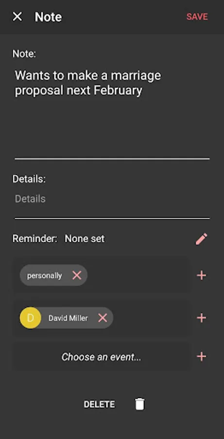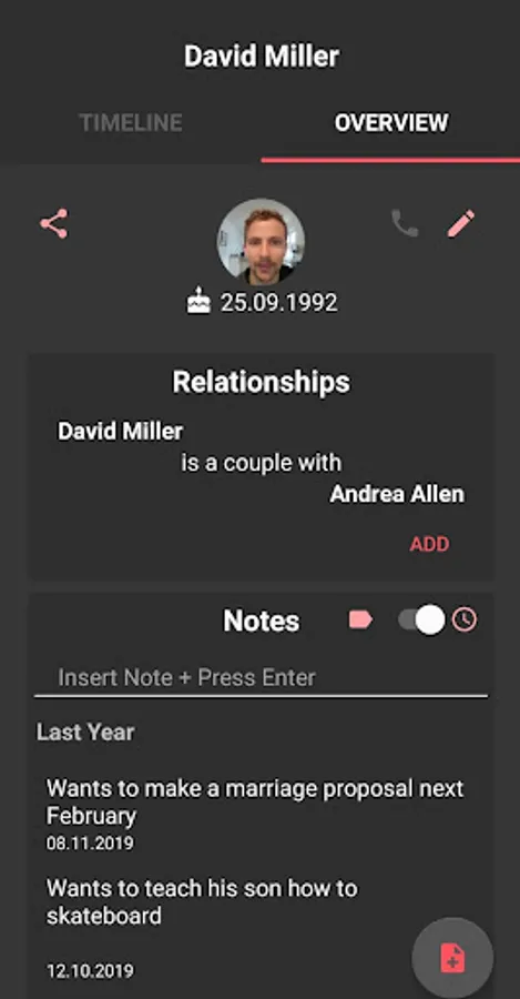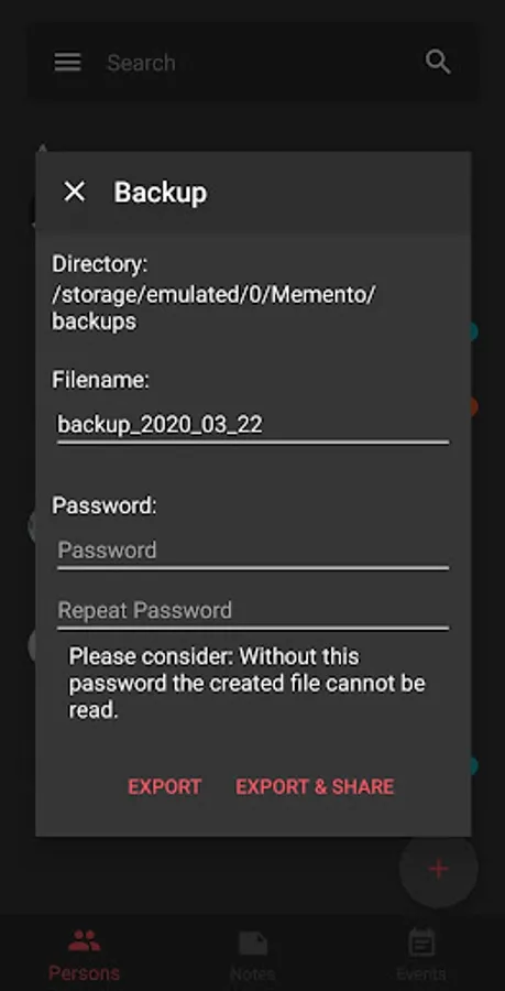 In this free App-Version, a maximum of 5 people and 50 notes and no events can be created. To be able to use the app indefinitely, please install the "Memento Pro Key" app.