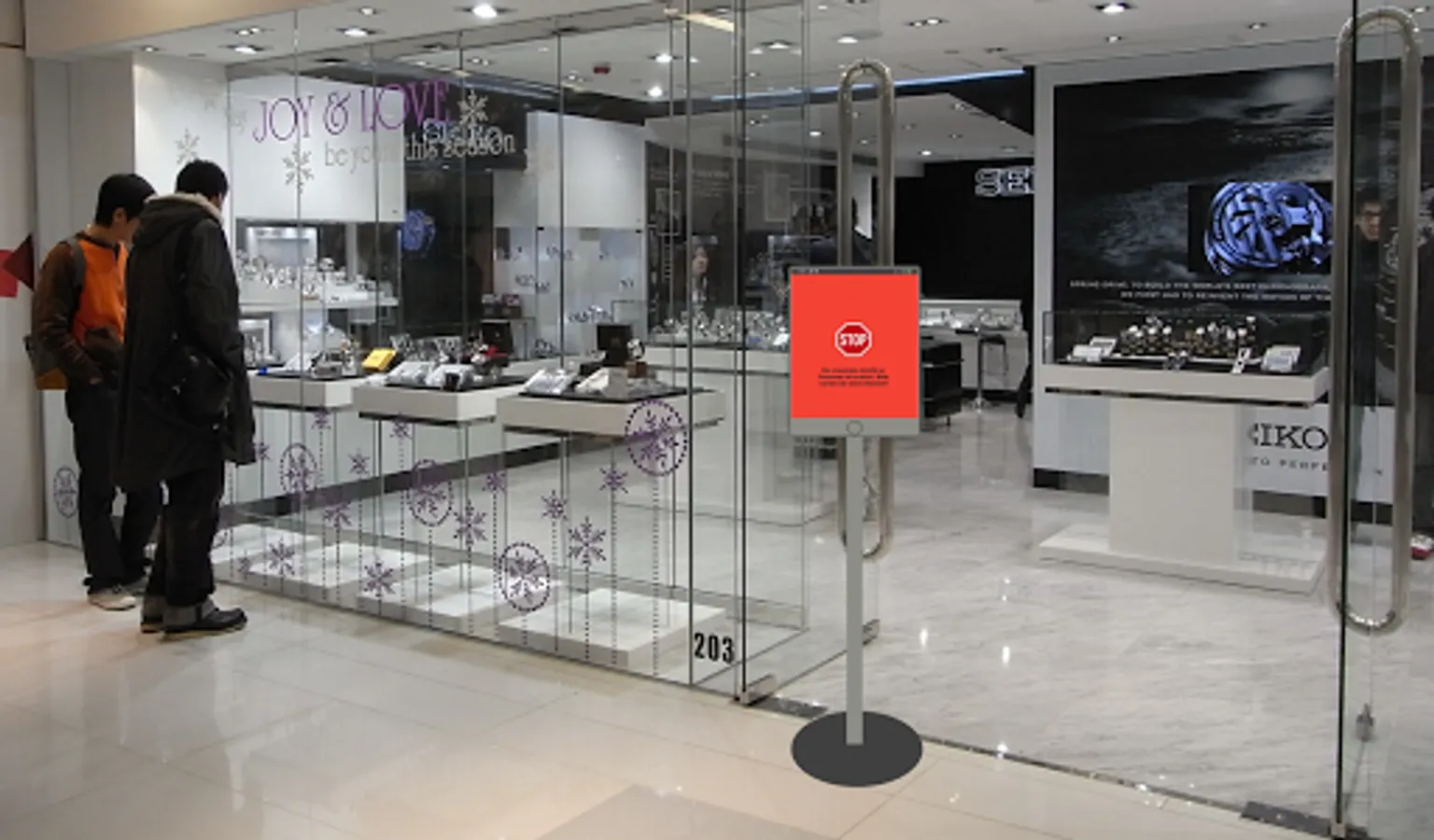 1. At the entrance to the store there is a smartphone / tablet with this app