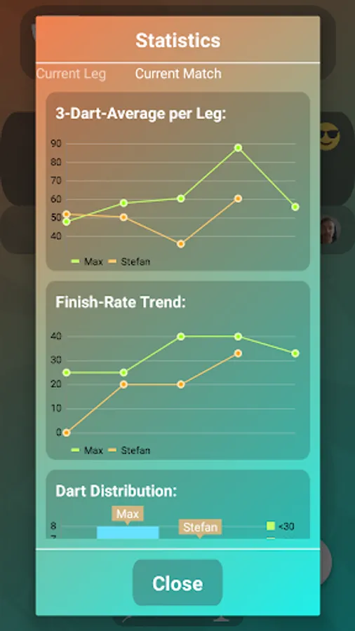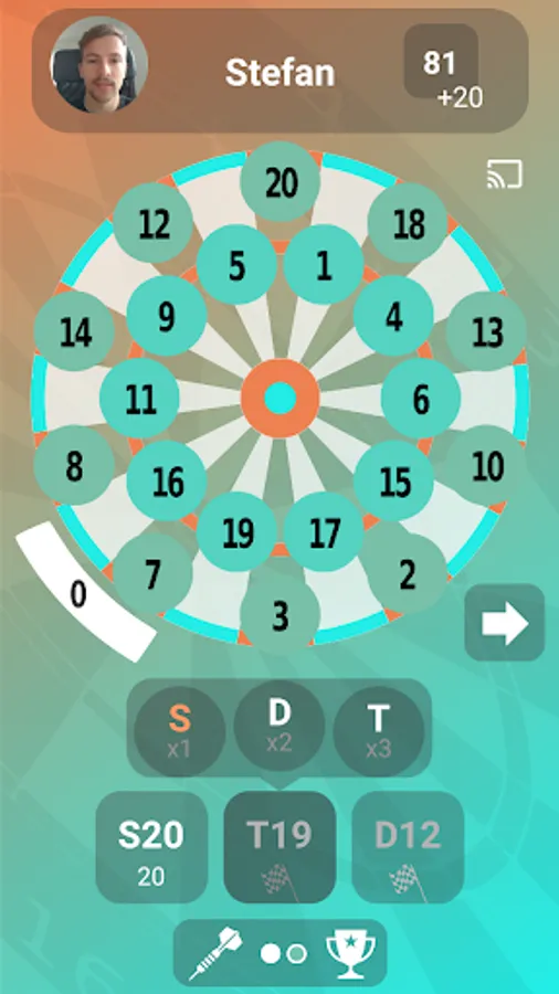 Choose between the most popular game-modes: 501 / 301 / Double Finish