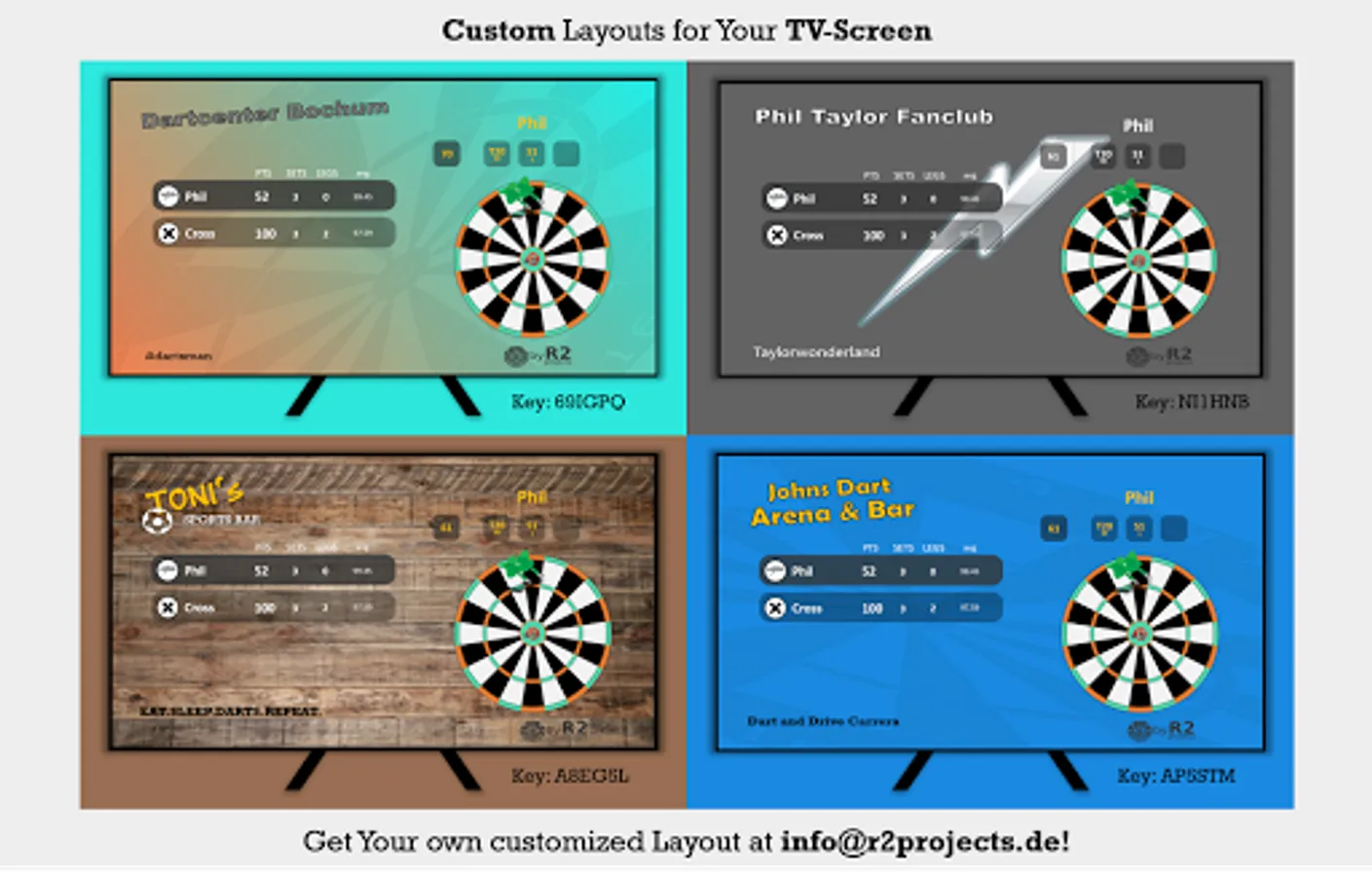 Optimized GUI's --> you can focus all alone on your Dart-Match.